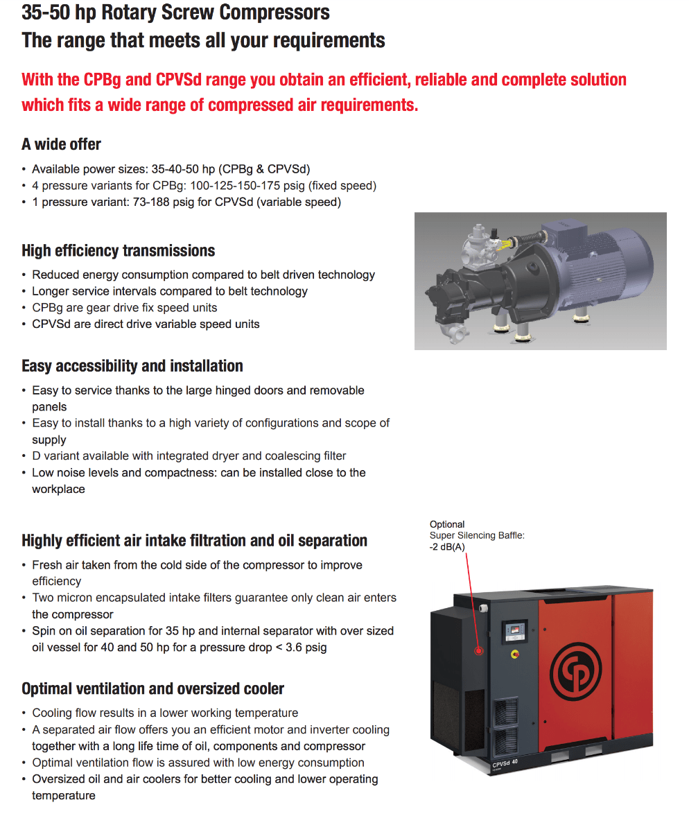 Chicago Pneumatic 35 HP Rotary Screw Compressor World Latin America with Air Dryer 154 CFM @ 125 PSI Gear Drive 230/460 Volt | CPBg D 35 | 4152017640