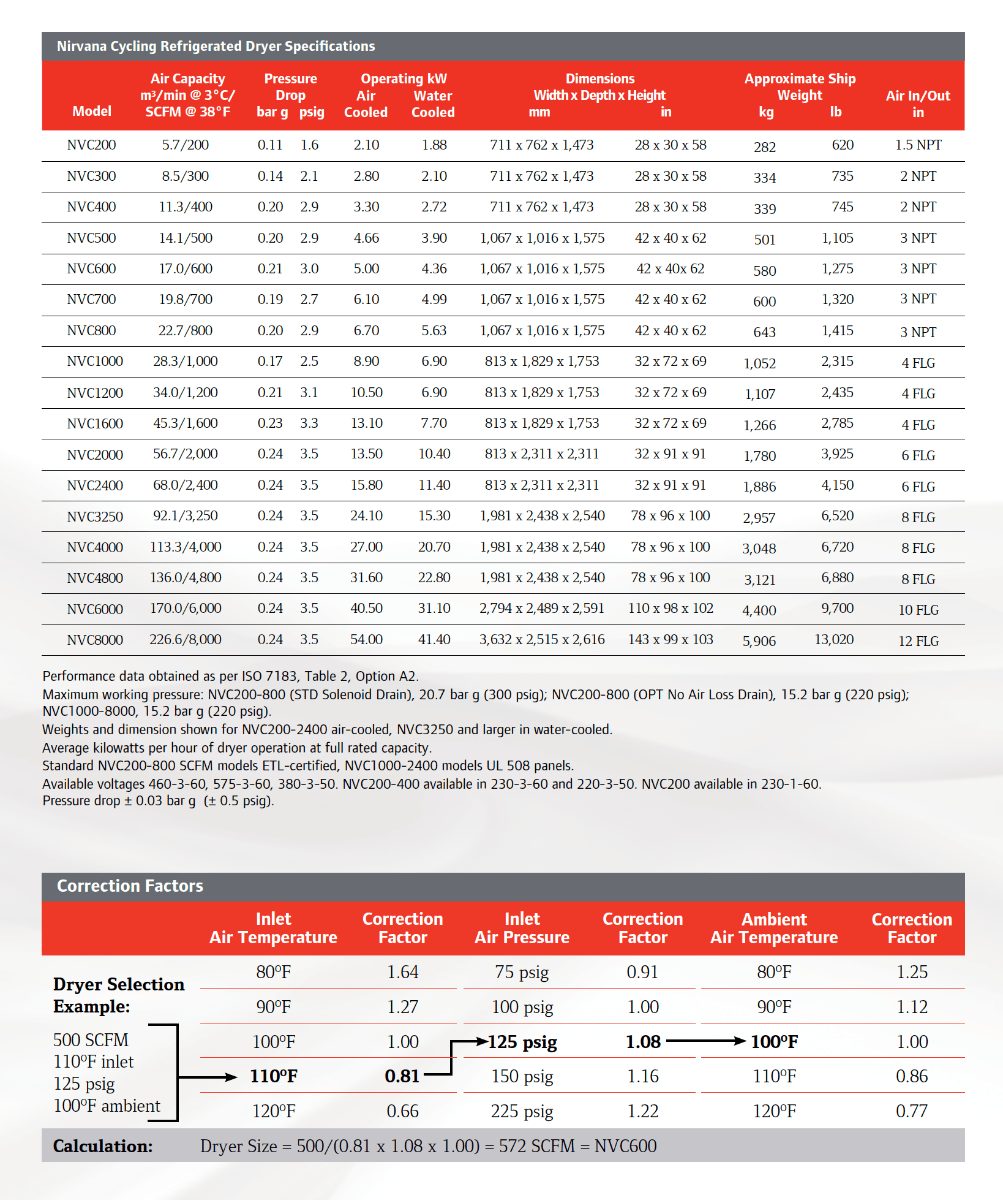 Ingersoll Rand NVC500A400, 500 CFM Nirvana Cycling Refrigerated Air Dryer, 460/3/60