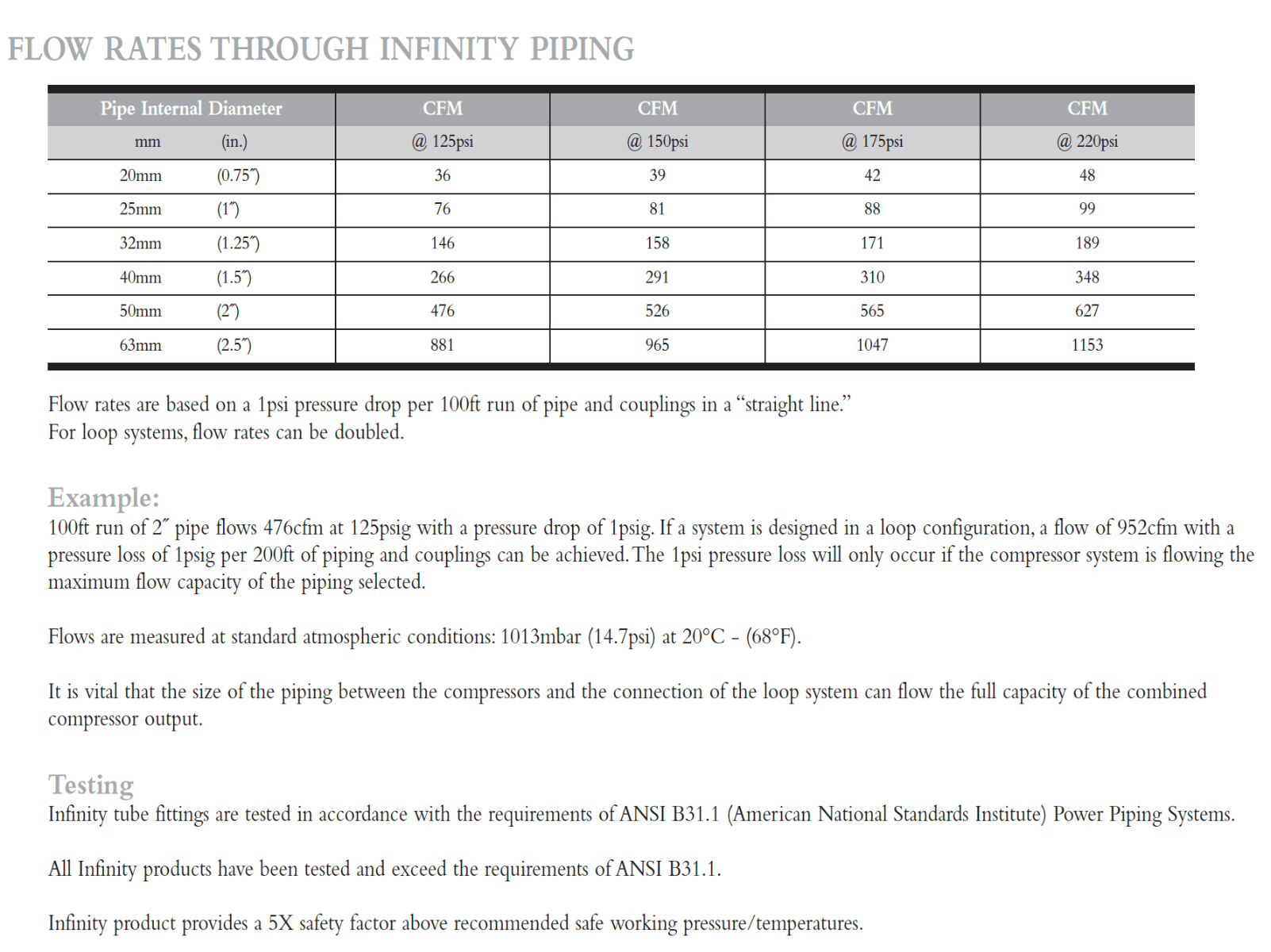 Compressor World offers the best quality Infinity piping, which is used for a variety of applications. It's simple, easy solution for air compresssor piping. Offering the performance of heavy, traditional steel piping, at the cost of systems using plastic. Its revolutionary lock-and-seal design ensures a totally safe, leak-free system for all compressed air, vacuum and inert gas applications. The solid brass, nickel-plated fittings make the system easy to use and install. Infinity’s powder-coated aluminum pipes are so light that they can be handled and installed by one person. There’s no welding, gluing or threading; a simple pipe cutter and de-burring tool are the only tools required.