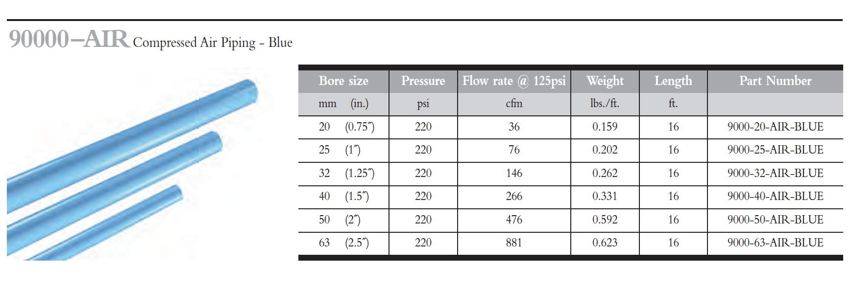 63 mm - (2.5" NPT) Aluminum Air Piping, 2.5" x 16' Lengths | 9000-63-AIR-BLUE