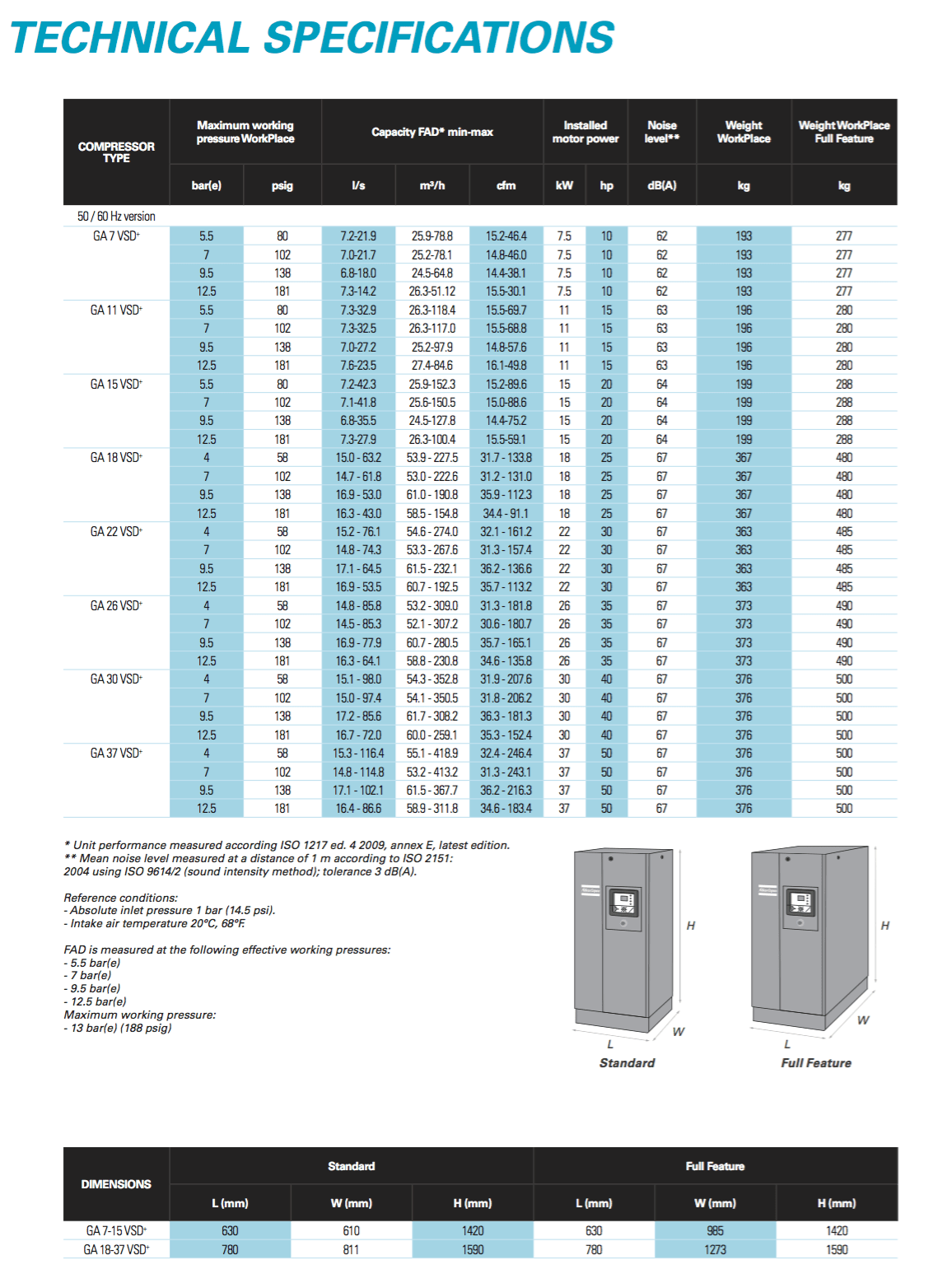 - On top of the energy savings, the GA VSD+ realizes a Free Air Delivery (FAD) increase of up to 12%. The design of the motor and the drive train are protected by pending patents.