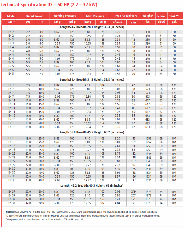 ELGI 5 HP Rotary Screw Compressor World Latin America offering 19.3 CFM @ 125 PSI, 60 Gallon Air Tank with Air Dryer 230-Volt, 1-Phase | EN04-125-60T-1PH
