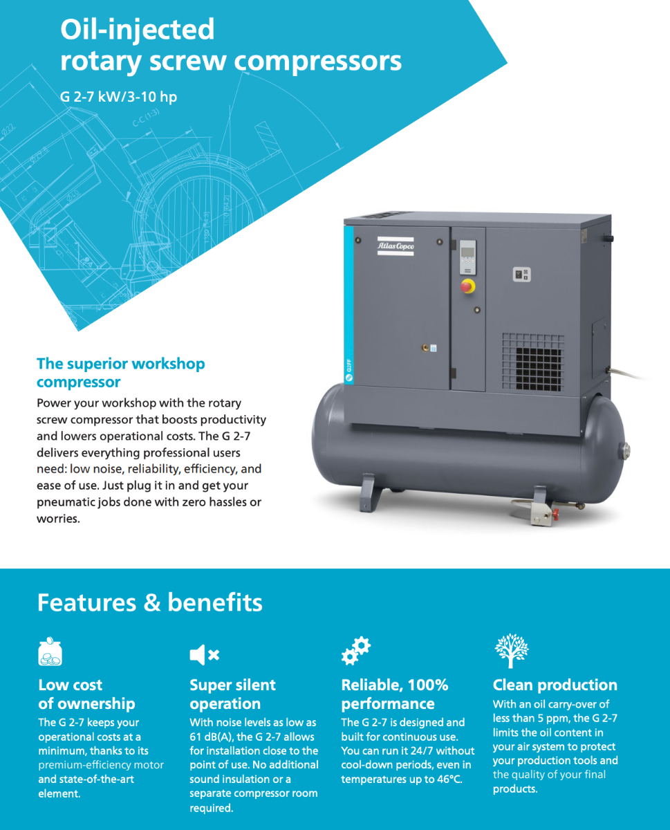 Atlas Copco G2-116T AP 208-230/460, 3 HP Rotary Screw Compressor World Latin America with 71 Gallon Air Tank, 13.1 CFM @ 116 PSI, 208-230/460 Volt, 3-Phase | 8152103792