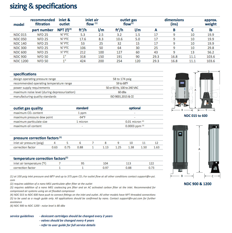Nano Purification 100 L/min Inlet Air Flow Lab Gas CO2 Removal Dryer | NDC 600-F