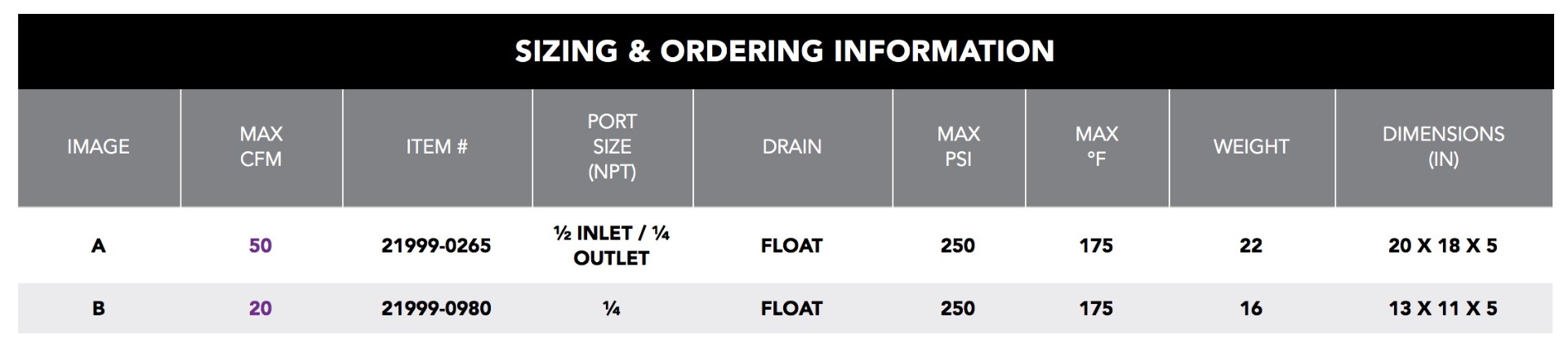 - Meets OSHA Grade D breathing air quality specifications.