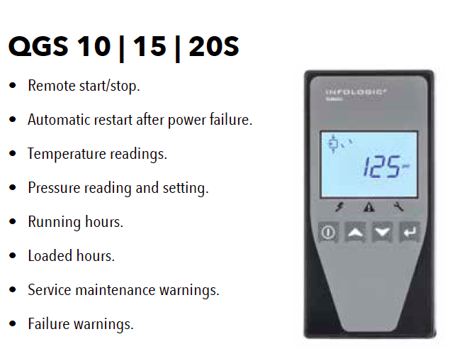 Full Control - Simple, efficient controls - Auto dual (10 & 15 hp) controls ensure that your QGS delivers efficient air only when you demand it