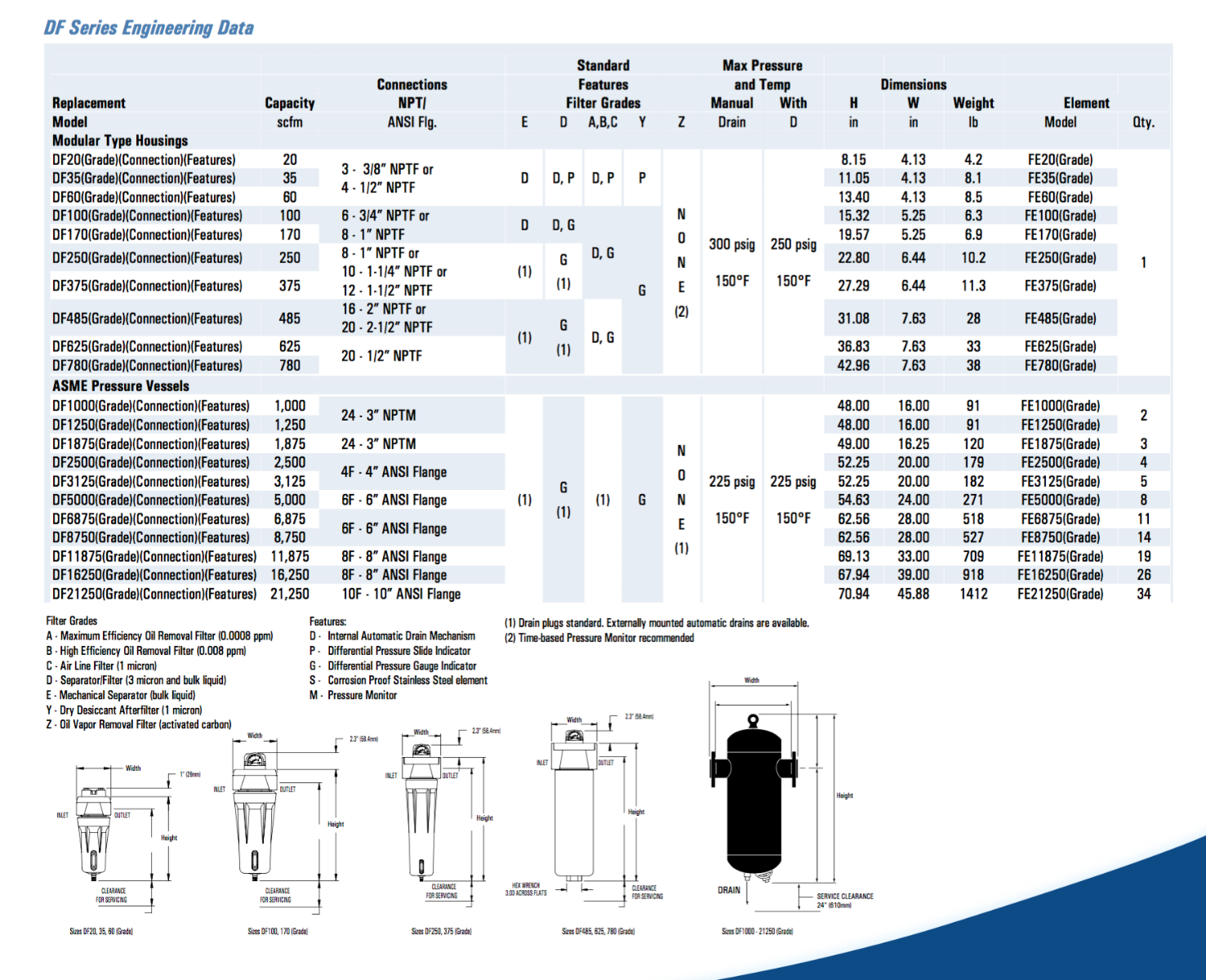 DF Series Filters incorporate industry-leading technology in user-friendly, World-Class Designs. Offering the most comprehensive range of elements in the industry.