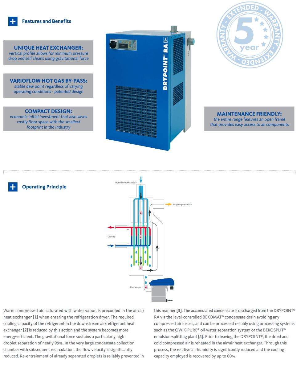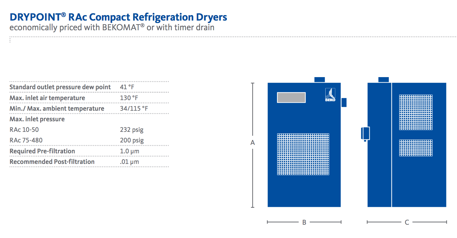 15 CFM BEKO DRYPOINT RAc Compact Refrigeration Dryer for 3 HP Compressors | RAc 15