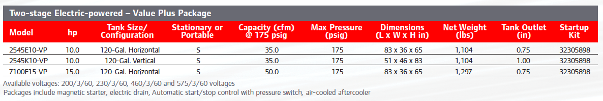 Value Plus Include: Automatic Tank Drain & Belt Guard Aftercooler, Magnetic Starter Mounted & Wired