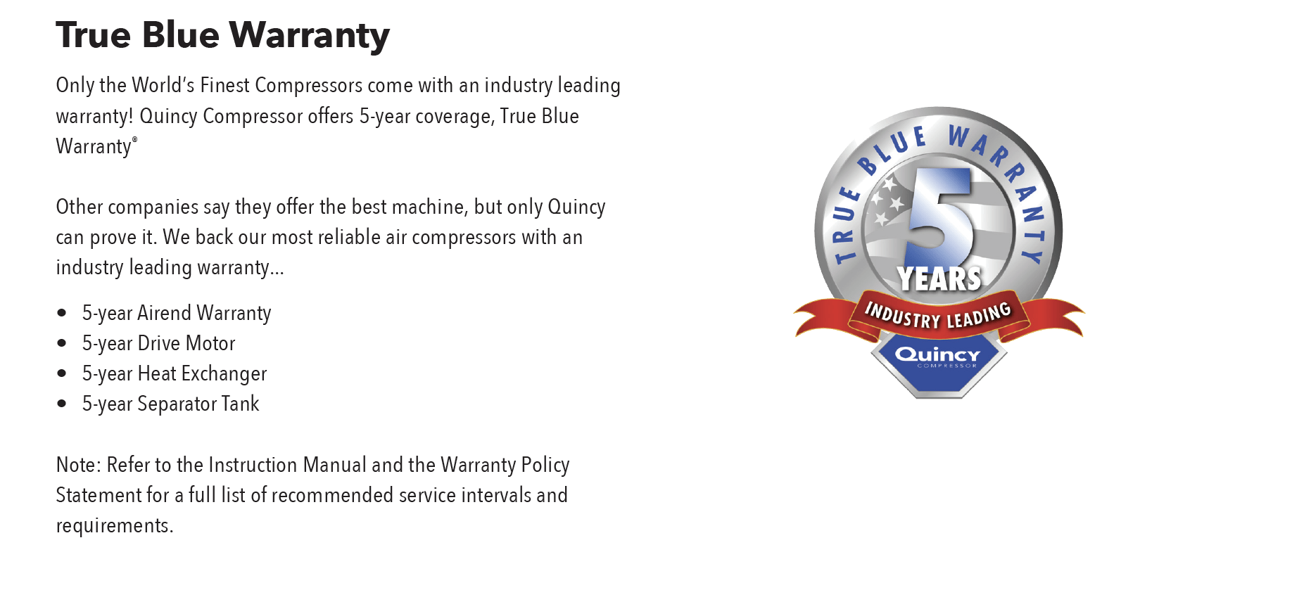 True Blue 5-Year Warranty with start up