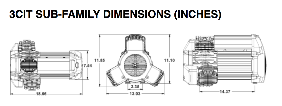 3CIT-1/3, 2.5 HP Dry Oilless Direct Drive Compressor World Latin America, 13 SCFM, 125 PSI, 230/460/3/60, Airtech USA
