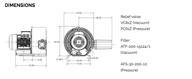AIRTECH 160 CFM, 4.60 HP Vacuum/Pressure Regenerative Blower Two Stage (-153 Vacuum H2O or 145 Pressure H2O) | 3BA1510-7AT46