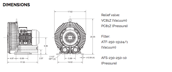 AIRTECH 360 CFM, 11.50 HP Vacuum/Pressure Regenerative Blower (-141 Vacuum H2O or 161 Pressure H2O) | 3BA1800-7AT26