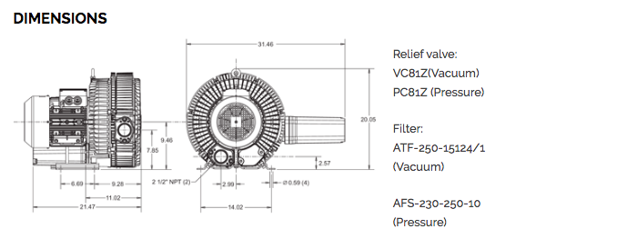 AIRTECH 360 CFM, 23.20 HP Vacuum/Pressure Regenerative Blower Two Stage (-197 Vacuum H2O or 301 Pressure H2O) | 3BA1810-7AT46