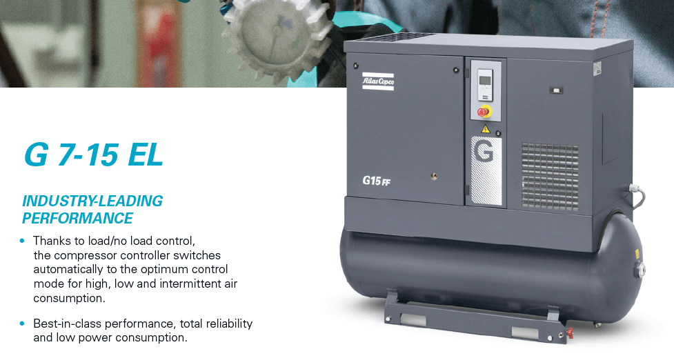 Compresor de Tornillo Rotativo Atlas Copco 10 HP Mundial Latinoamérica con Secador de Aire | G7L-125FF 208-230/460 | 8153291003