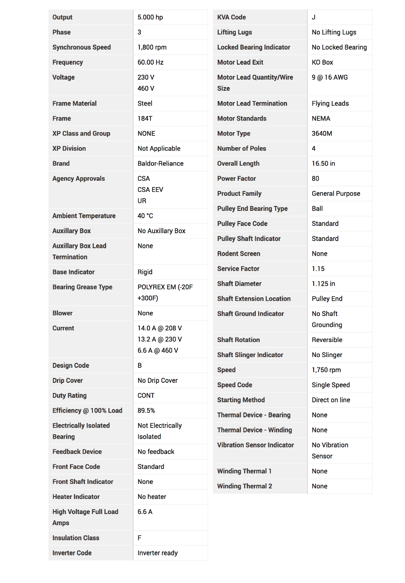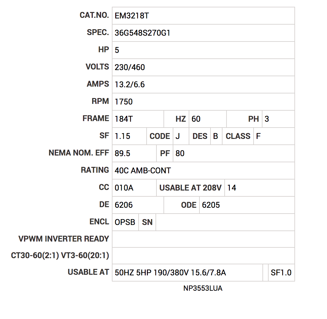 Motor Eléctrico Baldor EM3218T 5HP para Compressor World Latinoamérica, 1760RPM, 3PH, 60HZ, 184T, 3640M, OPSB, F1