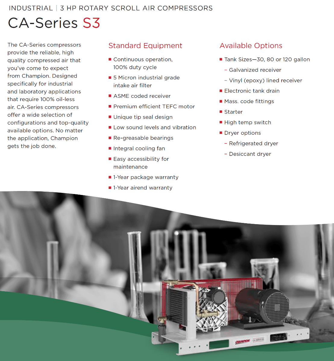 Champion CA Series compressors offer several standard features and many optional features designed to meet your requirements and exceed your expectations.