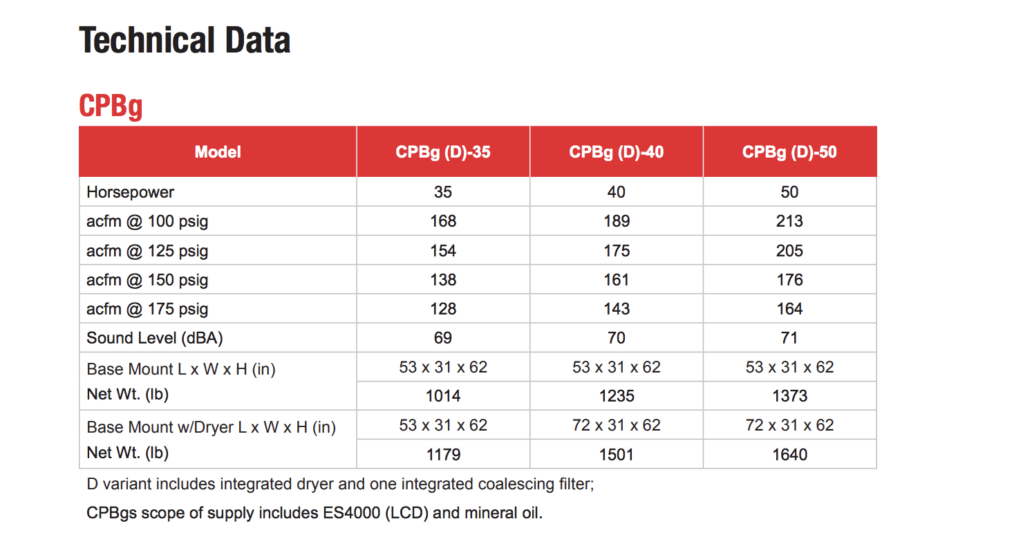 Our CPBg is available with dryer, water separator drain and post filter for improved quality air.