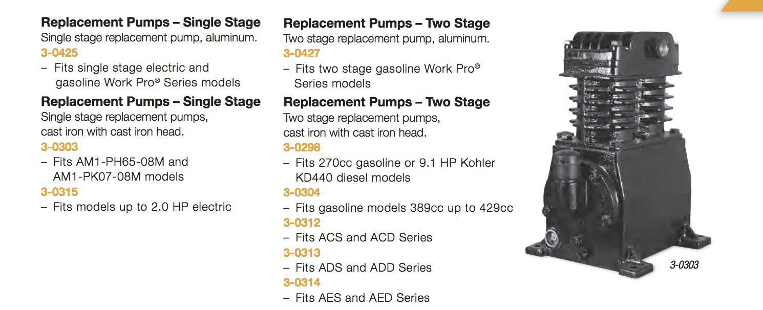 Mi-T-M 3-0304 Two Stage Compressor World Latin America Pump - Fits Fits gasoline models 389cc up to 429cc