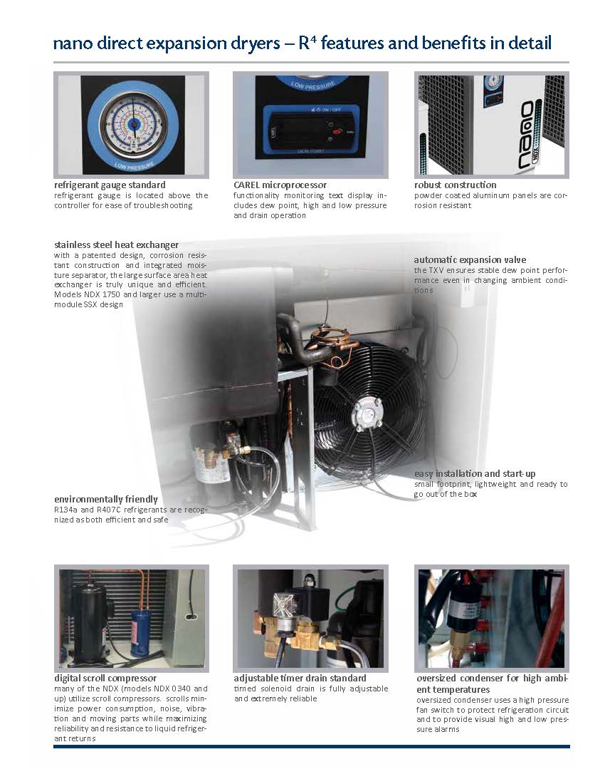 The NXC cycling refrigerated air dryers are the next generation of thermal mass dryers from nano. Unique dual transfer technology (DTT) is employed within the NXC dry thermal mass to save energy and money by effectively treating the compressed air in accordance with actual air flow.