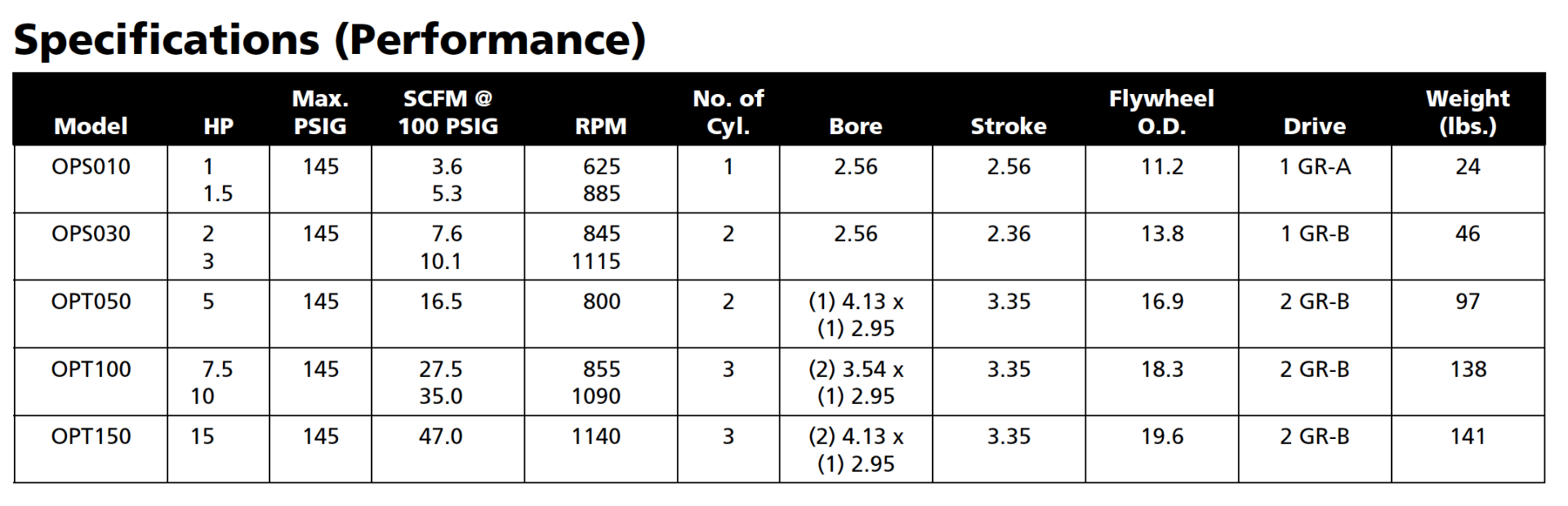 7.6 CFM @ 2 HP, 10.1 CFM @ 3 HP