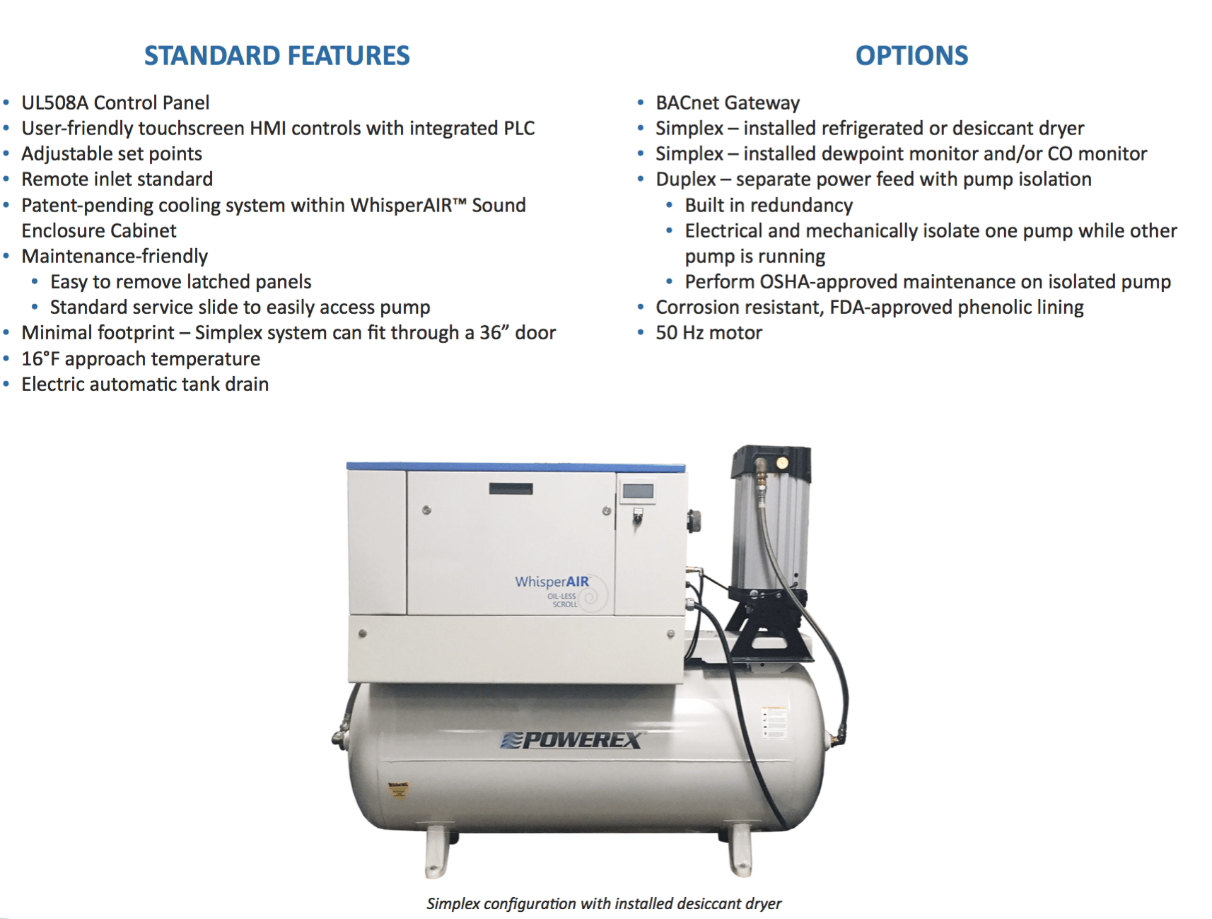 New! The Powerex Enclosed Scroll Tankmount System is designed to provide clean, dry air for industrial applications where the quality of the compressed air is critical.