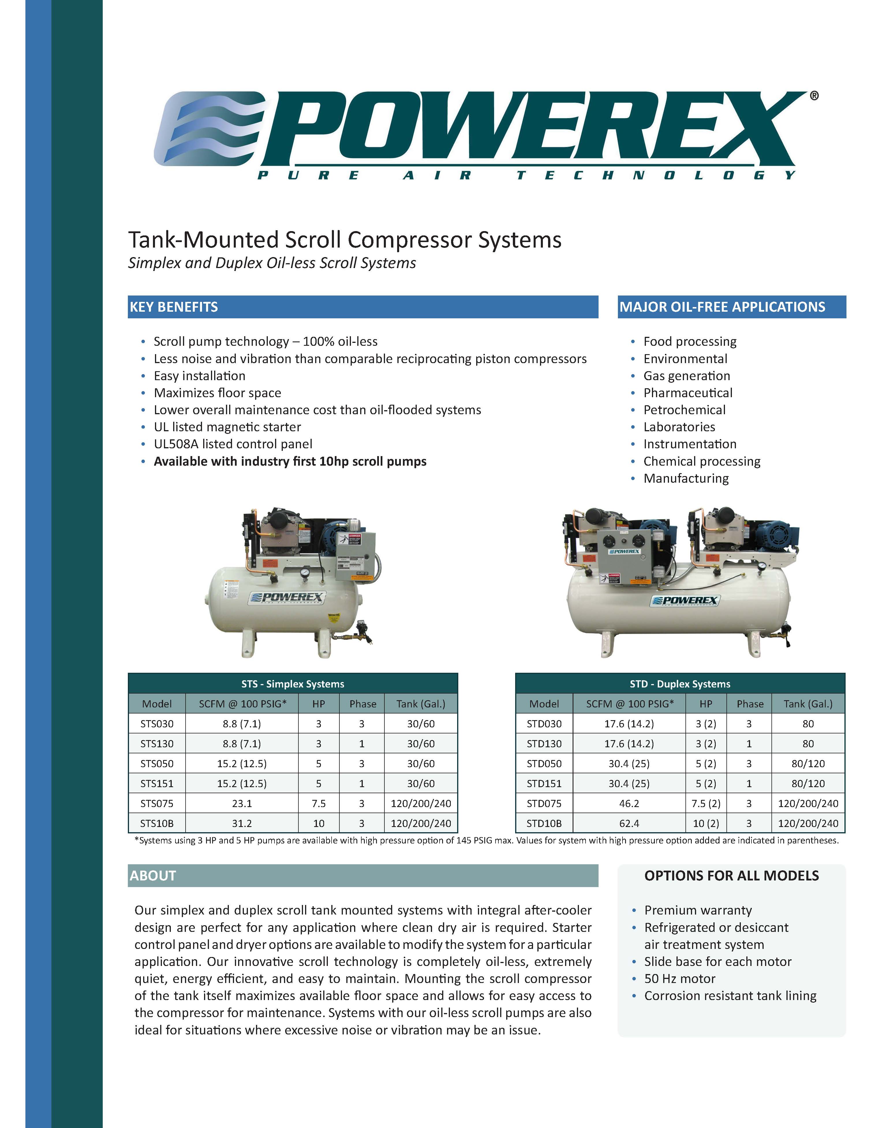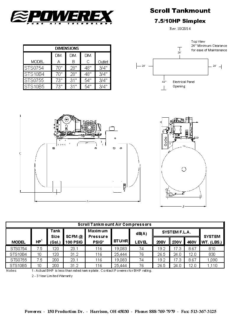 Powerex 7.5 HP Compressor World Latin America Oilless Scroll 200 Gal Tank 23.1 CFM | 460 Volt, 3-Phase | STS0755-4-2