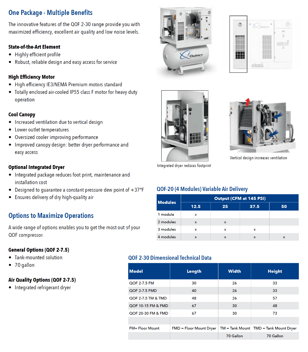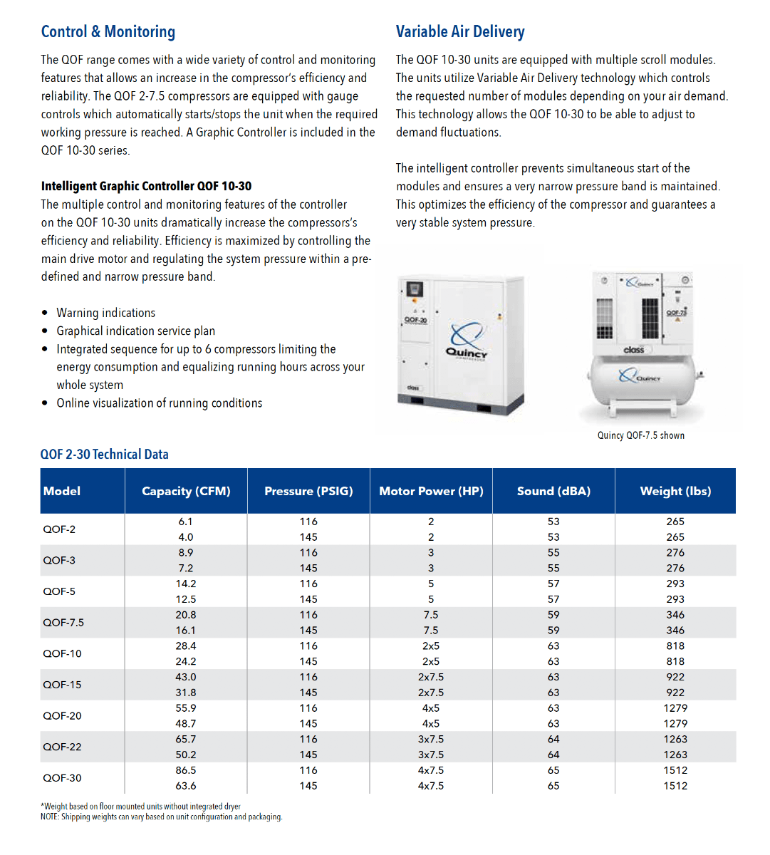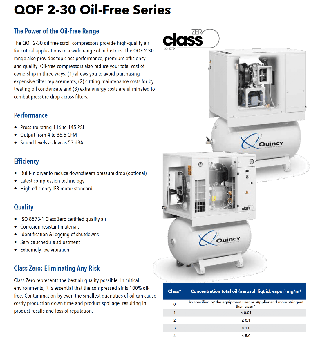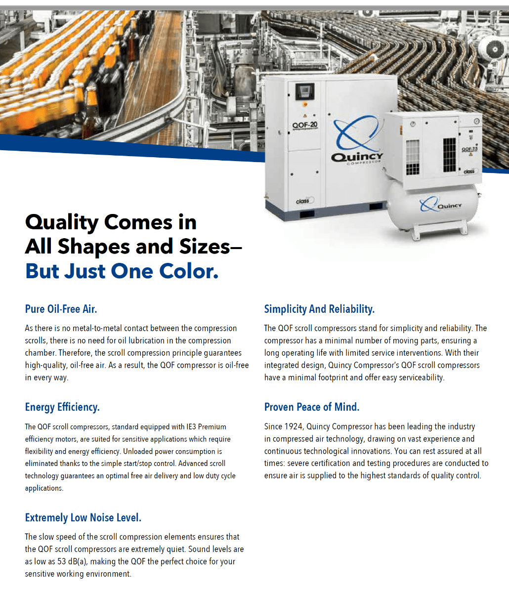 Quincy 22 HP Oilless Scroll Compressor World Latin America 65 CFM, 116 PSI, 460-Volt, 3-Phase | QOF-22