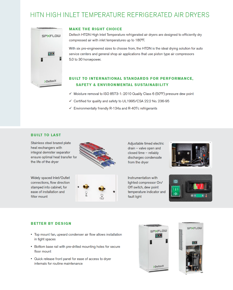 SPX-Deltech HTDN 20-FP, 20 CFM High Temperature Air Dryer, 3/4" NPT, 115/1/60, Includes Particulate Pre Filter, and Oil Removing After Filter